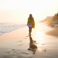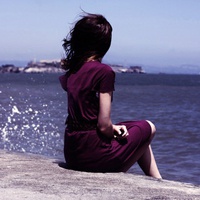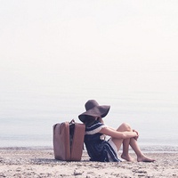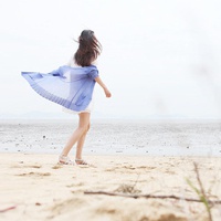 姑娘一个人在海边